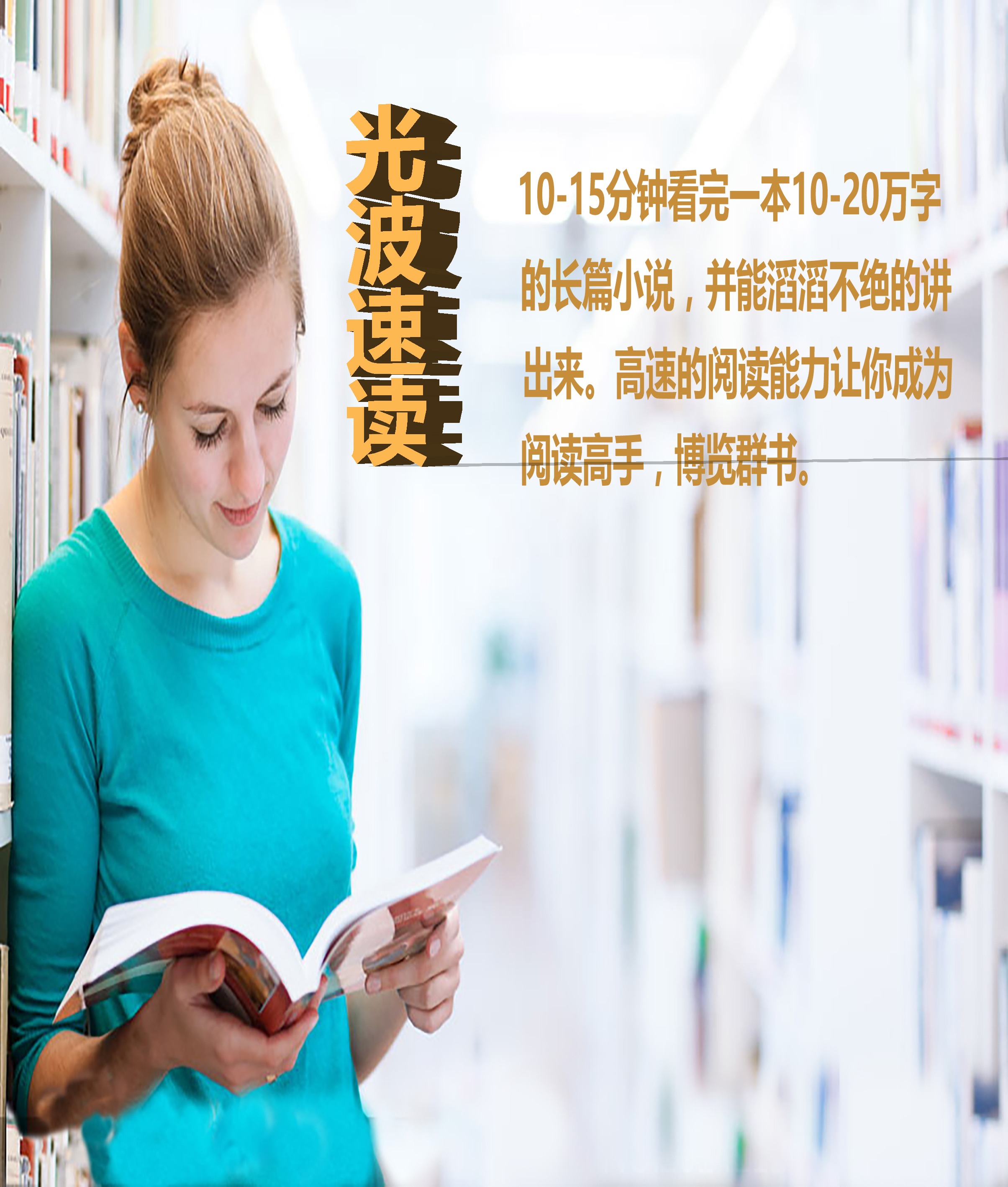 文字以光波的速度输入大脑中迅速转成图像,3-5秒看一页书一目十行,5-15分钟看完一本10-20万字的长篇小